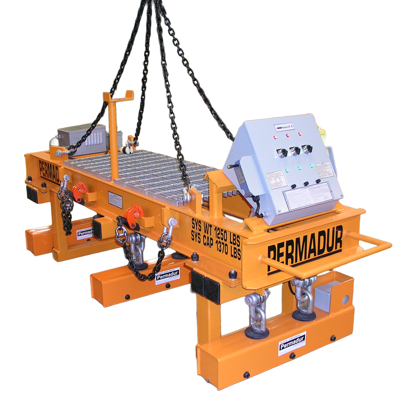 Permadur Plate Handling Systems provide purpose-built equipment designed specifically for steel plates and large flat materials. These systems integrate lifting, gripping or support mechanisms (magnet packages, clamps, lifting beams, or other customized attachments) to ensure stable, balanced, and controlled lifting and movement of steel plates. By using equipment engineered for plate dimensions and weight, the system ensures proper load distribution, stable transport, secure grips, and safe handling — whether lifting single plates, stacking, staging for processing, or transporting across the shop floor.